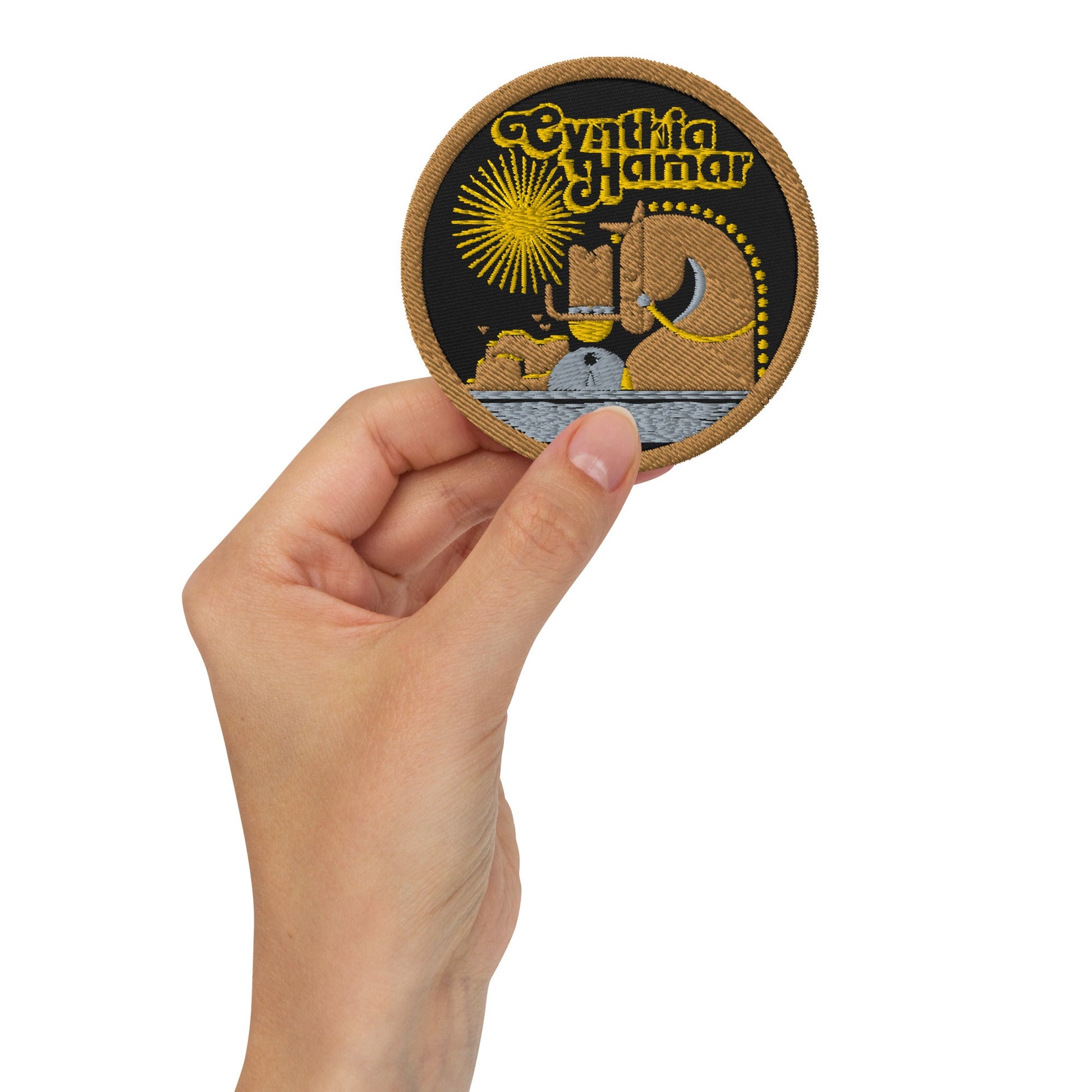 Cynthia Hamar Embroidered Patch with Cowboy Design.